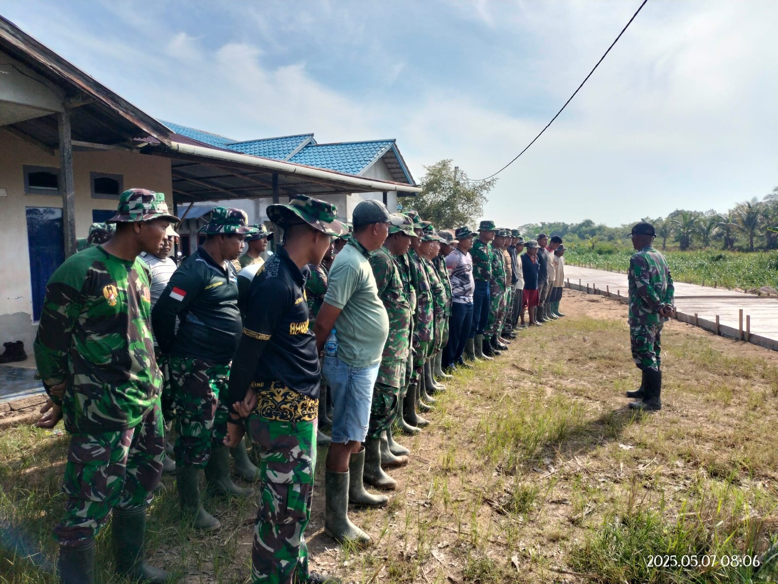 Apel pagi ini dipimpin oleh Pasi Ter Kodim 1201/Mempawah, Kapten Czi Kiki Gunawan, yang juga bertindak sebagai koordinator lapangan kegiatan TMMD. Dalam arahannya, Kapten Kiki menyampaikan pembagian tugas, pengecekan personel, serta motivasi kepada seluruh peserta apel, baik dari unsur TNI maupun warga yang terlibat dalam kegiatan fisik TMMD.