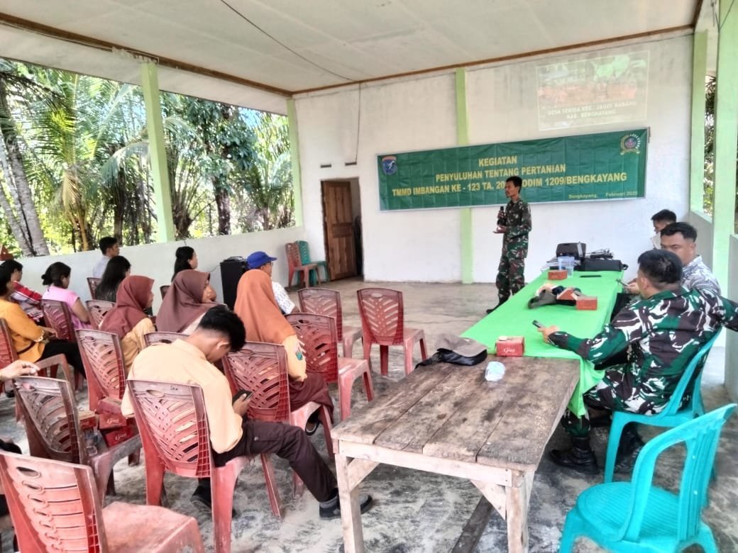 Bengkayang – Satgas TMMD imbangan ke 123 Kodim 1209/Bky memberikan penyuluhan pertanian kepada masyarakat