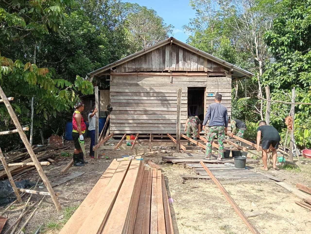Bengkayang – TNI Manunggal Membangun Desa (TMMD) ke-123 Kodim 1209/Bky Tahun 2025, merenovasi rumah warga tidak layak huni (RTLH) di Dsn.Kindau,Desa.Sekida,Kec.Jagoi Babang Kab.Bengkayang.