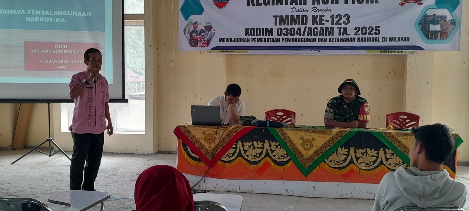 Penyuluhan Bahaya Narkoba ini merupakan salalah satu sasaran non fisik TMMD ke-123 Kodim 0304/Agam yang berkerjasama dengan Kesbangpol Kabupaten Agam.