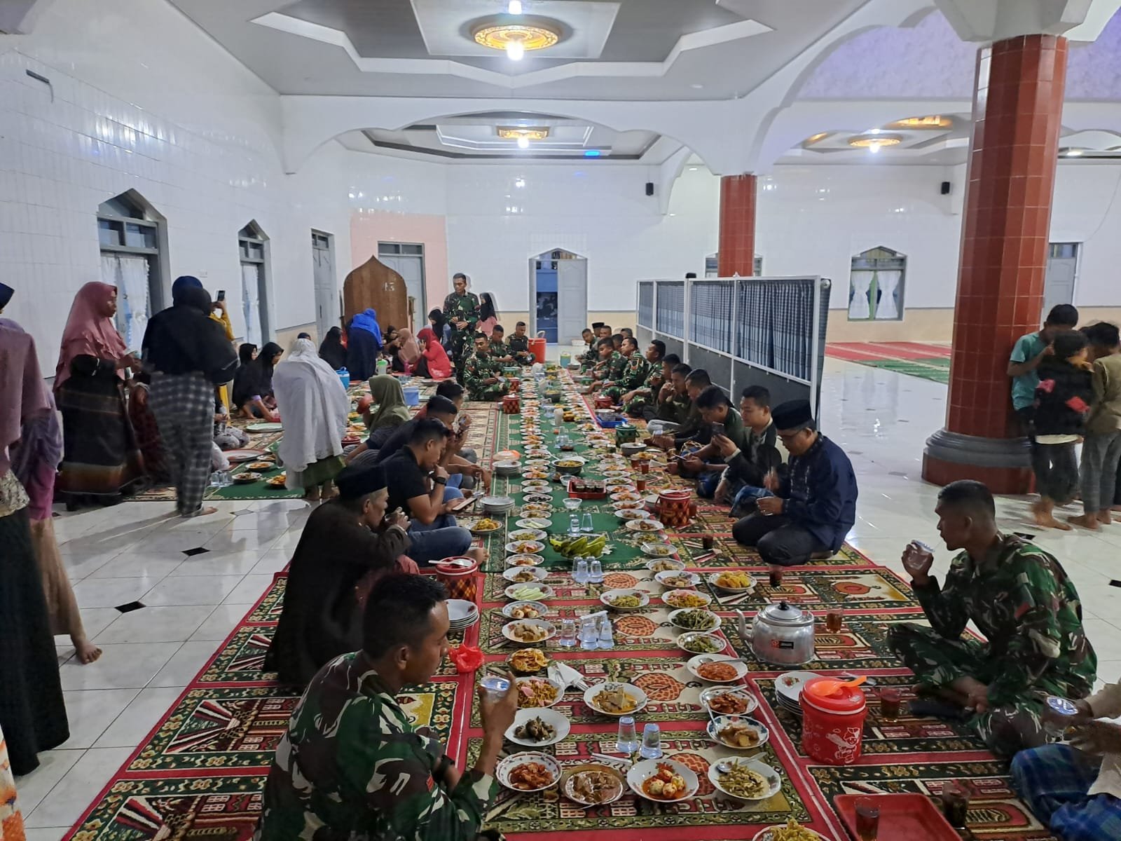 Acara buka puasa bersama dirangkaikan dengan sholat Maghrib berjamaah di Mesjid Al taqwa, Jorong Hilalang. dihadiri oleh anggota satgas TMMD ke-123 Kodim 0304/Agam yang di pimpin oleh Kapten lnf Chairul Muhammad Pasiter Kodim 0304/Agam. dimulai dengan pembacaan ayat suci Al-Qur’an yang dilantunkan oleh salah seorang anggota Satgas TMMD.