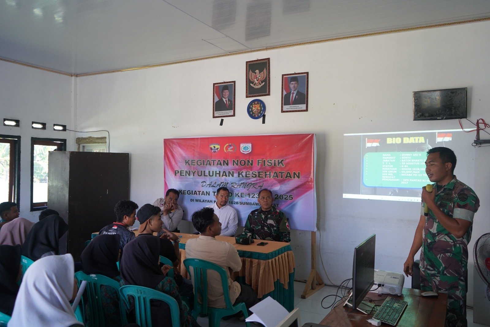 Sumbawa Barat, NTB – Dalam rangka meningkatkan kesadaran masyarakat tentang bahaya narkoba dan pentingnya menjaga kesehatan, Satuan Tugas TNI Manunggal Membangun Desa (TMMD) ke-123 Kodim 1628/Sumbawa Barat menggelar penyuluhan narkoba dan kesehatan. Kegiatan ini berlangsung di Aula Kantor Desa Batu Putih, Kecamatan Taliwang, Kabupaten Sumbawa Barat, pada Rabu (12/03/2025).