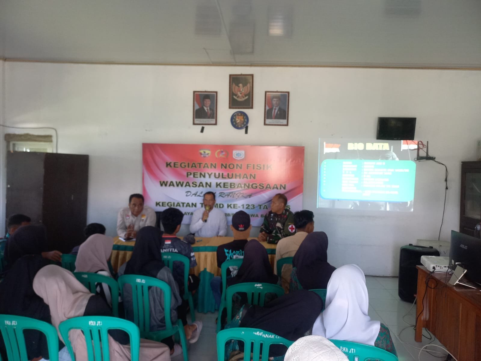 Sumbawa Barat, NTB – Satgas TMMD ke-123 Kodim 1628/Sumbawa Barat melaksanakan kegiatan non-fisik berupa penyuluhan wawasan kebangsaan di Kantor Desa Batu Putih, Kecamatan Taliwang, Kabupaten Sumbawa Barat, Senin (17/03/2025).