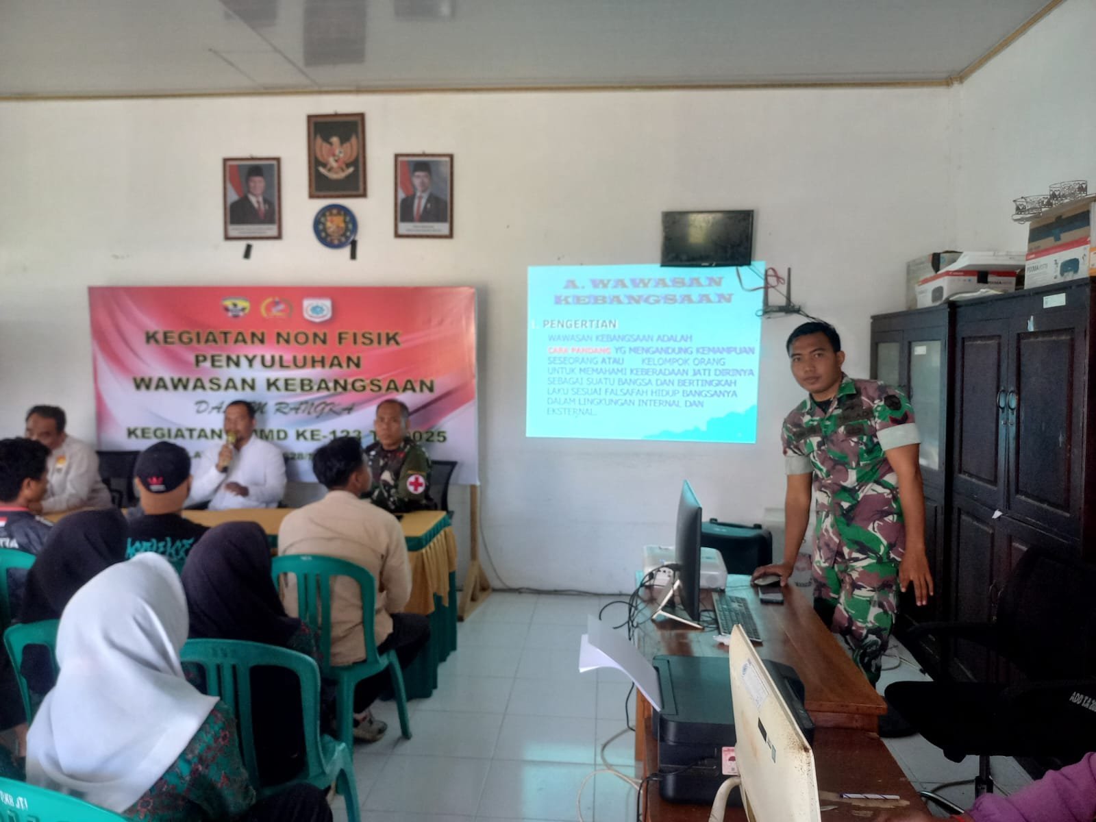 Satgas TMMD melaksanakan sasaran non fisik penyuluhan wawasan kebangsaan TMMD Ke-123 Kodim 1628/Sumbawa Barat TA 2025 Bertempat di Kantor Desa Batu Putih Kecamatan Taliwang, Kabupaten Sumbawa Barat. Senin (17/03)25).