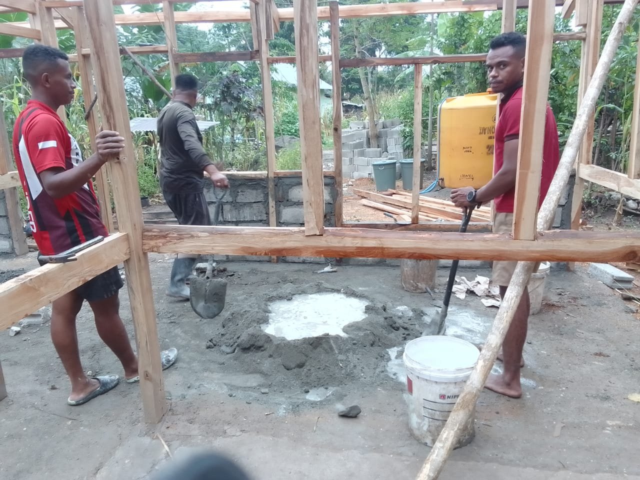 Dibantu oleh warga setempat, personel Satgas TMMD dengan sigap menyusun batako demi batako. Serda Ferdinan Auri yang memimpin tim, memastikan setiap proses berjalan sesuai rencana agar rumah segera dapat dihuni.