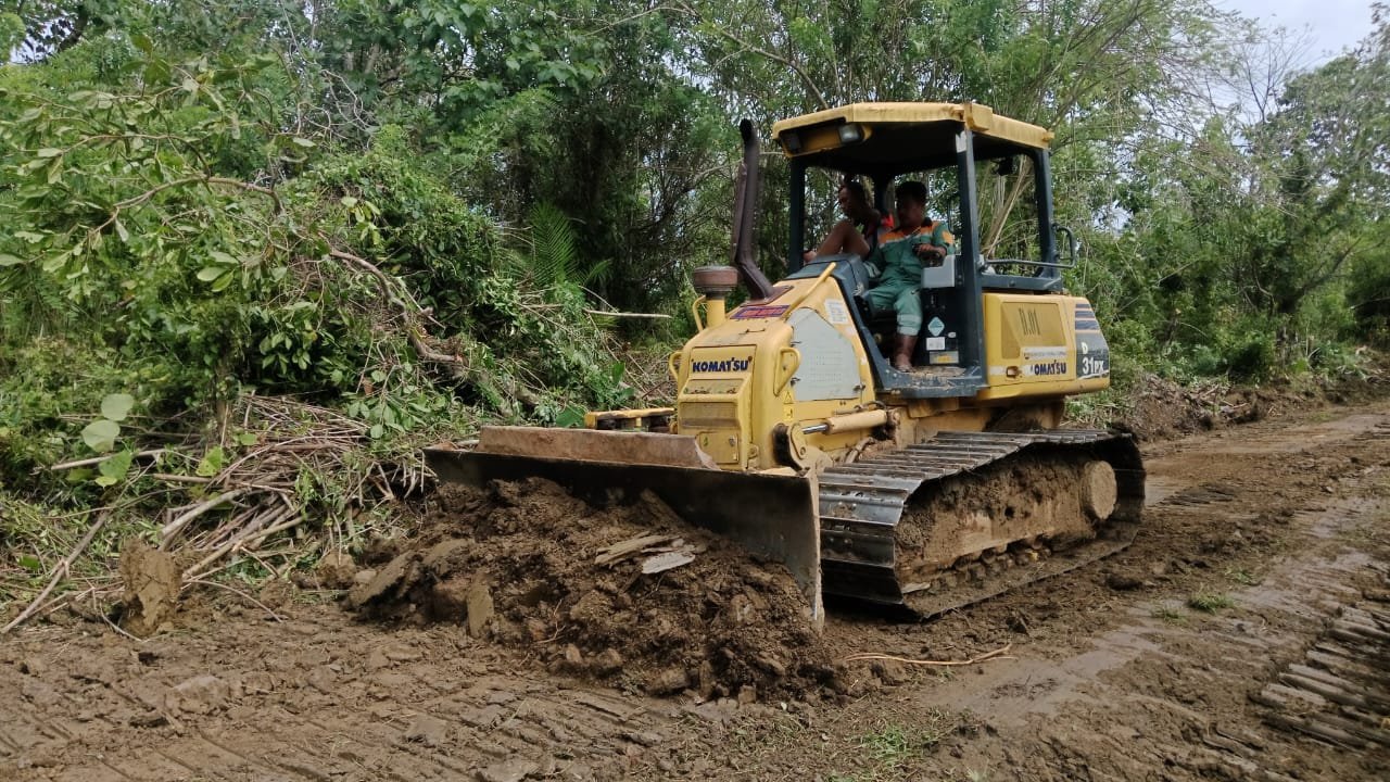 “Kami memulai dengan pengerukan dan perataan tanah agar badan jalan dapat dilebarkan sesuai target,” ujarnya.