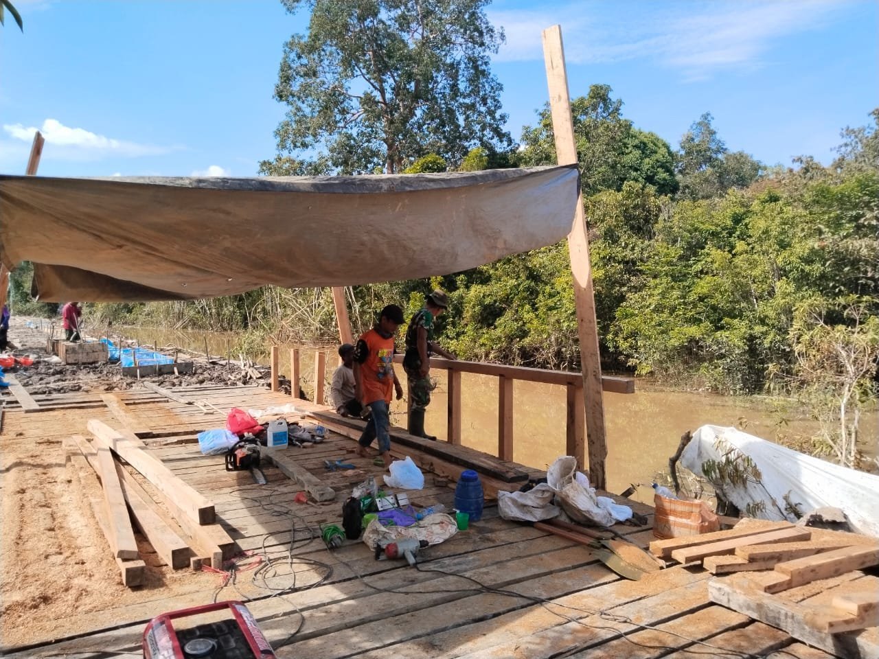 Barito Selatan, 30 Mei 2025 – Dalam rangka meningkatkan aksesibilitas dan memperlancar aktivitas warga, Satgas TMMD ke-124 Kodim 1012/Buntok melaksanakan pembangunan jembatan di Jalan Desa Talio, Kecamatan Karau Kuala, Kabupaten Barito Selatan. Jembatan ini dibangun untuk menggantikan jembatan lama yang kondisinya sudah rusak dan membahayakan pengguna jalan.