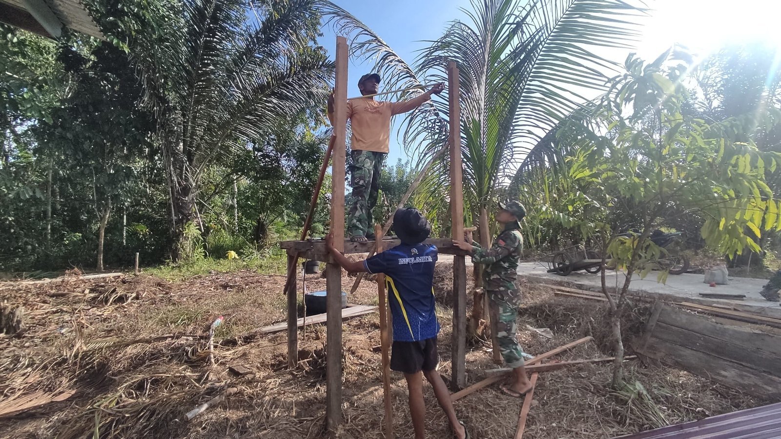 Anggota Satgas TMMD bekerja secara profesional dan penuh ketelitian, memastikan pondasi toren air dibangun dengan standar keamanan yang tinggi. Hal ini penting mengingat toren akan menjadi sumber utama pasokan air bersih bagi warga dusun.