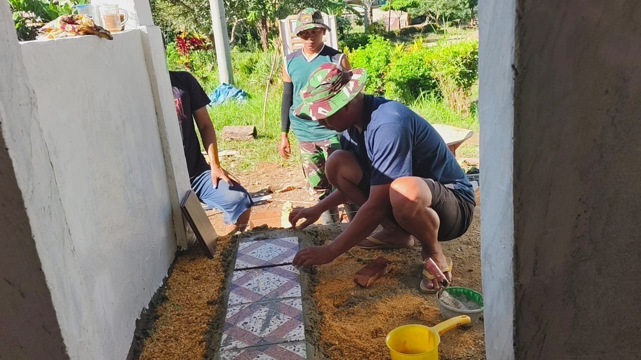 “Hari ini kami pasang keramik lantai bersama masyarakat secara gotong royong, ada juga yang melanjutkan pekerjaan Pengecatan,” ujarnya di lokasi kegiatan.