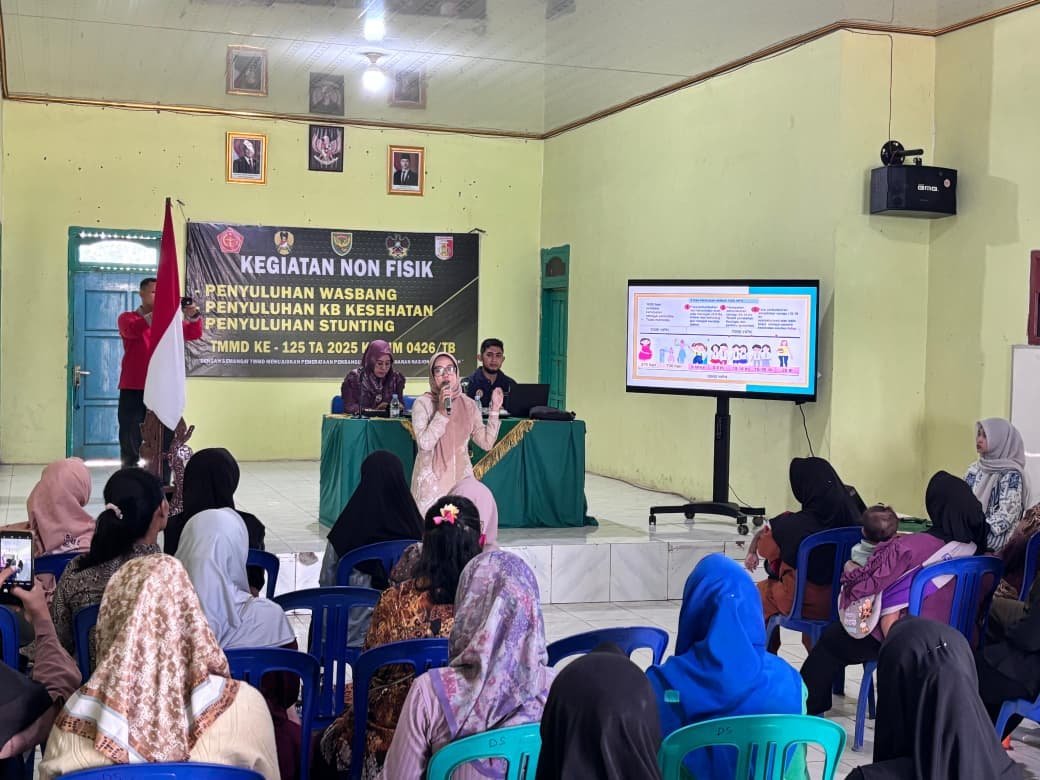 Tulang Bawang – Sebagai bagian dari kegiatan non-fisik, Satgas TNI Manunggal Membangun Desa (TMMD) ke-125 menggelar penyuluhan stunting di Kampung Moris Jaya, Kecamatan Banjar Agung, Kabupaten Tulang Bawang, Jumat (15/8/2025). Kegiatan ini bertujuan memberikan edukasi kepada masyarakat tentang pencegahan stunting dan pentingnya gizi seimbang bagi tumbuh kembang anak.