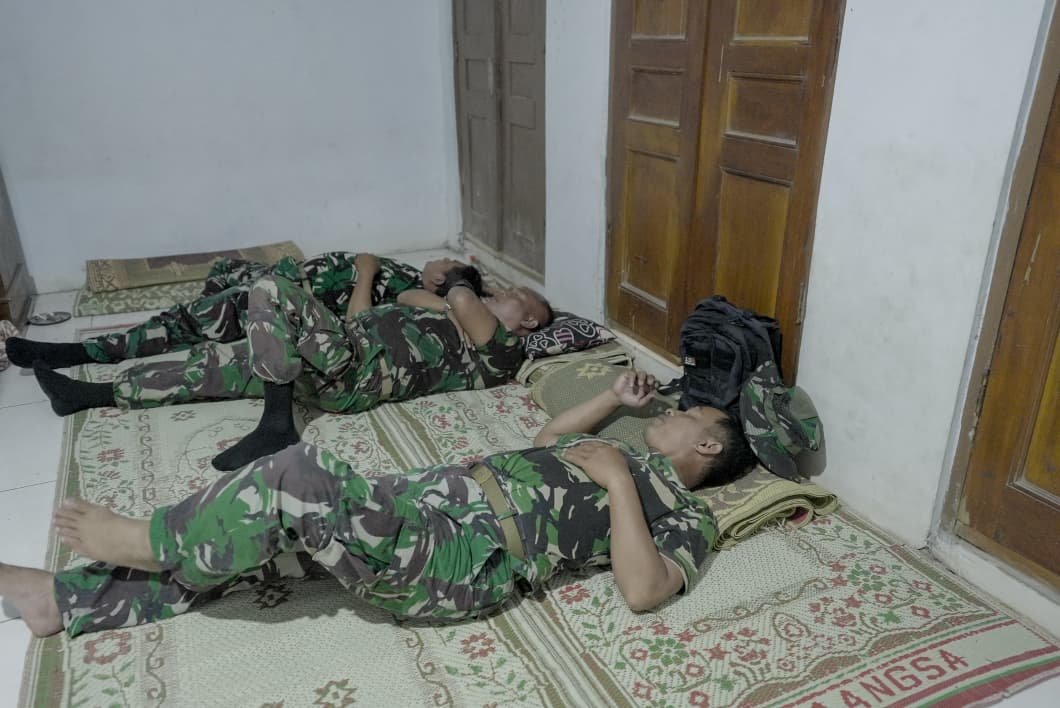 KUDUS – Menjelang penutupan TNI Manunggal Membangun Desa (TMMD) Ke-125 Kodim 0722/Kudus, suasana di Desa Kandangmas, Kecamatan Dawe, tampak lebih tenang. Hampir seluruh sasaran pengerjaan fisik rampung dikerjakan, menyisakan waktu bagi anggota Satgas untuk sejenak merebahkan badan di sela istirahat siang.
