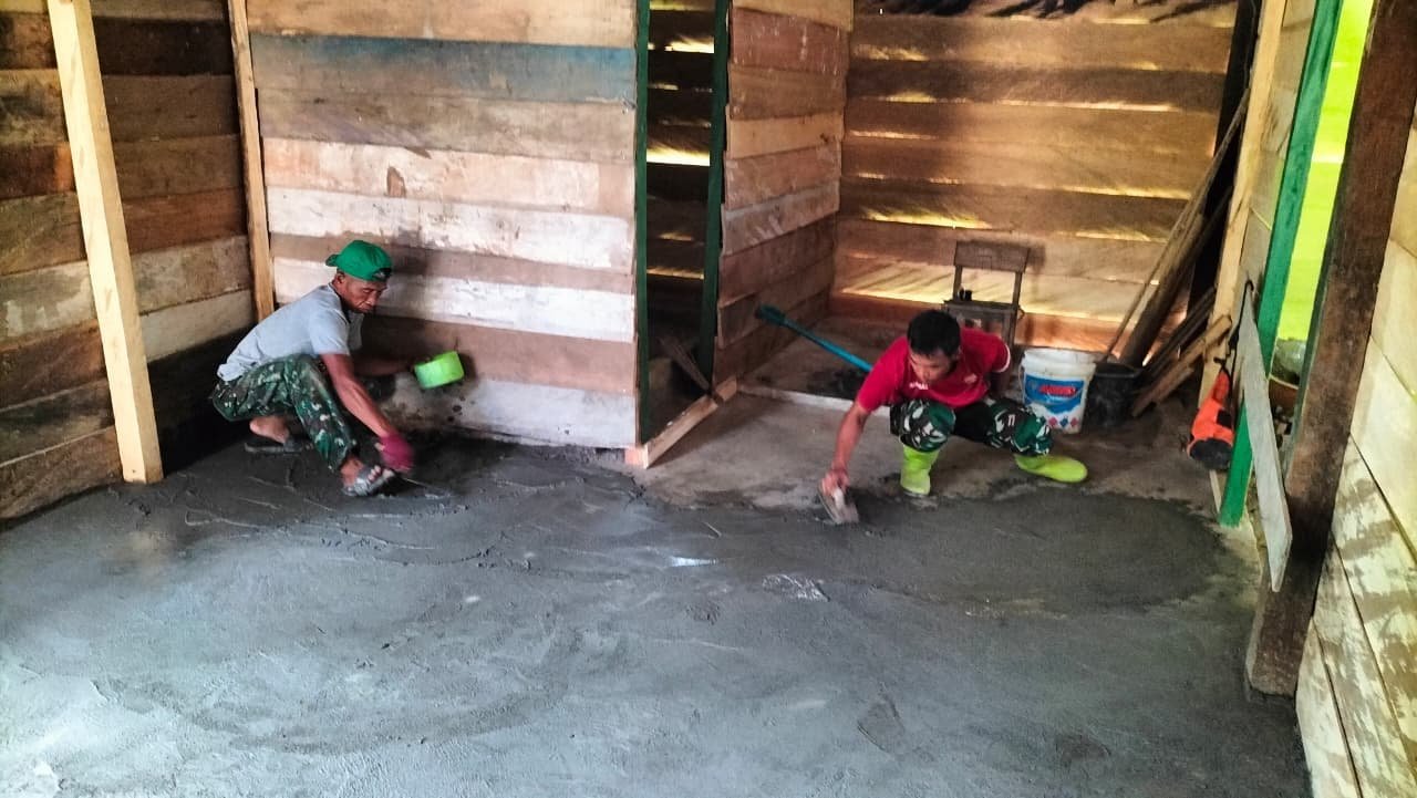 Antusiasme masyarakat terlihat jelas dengan banyaknya warga yang ikut membantu, mulai dari menyiapkan bahan bangunan, mencampur semen, hingga meratakan plester pada dinding. Kerja sama ini menjadi bukti nyata kemanunggalan TNI dan rakyat yang terjalin kuat di wilayah tersebut.