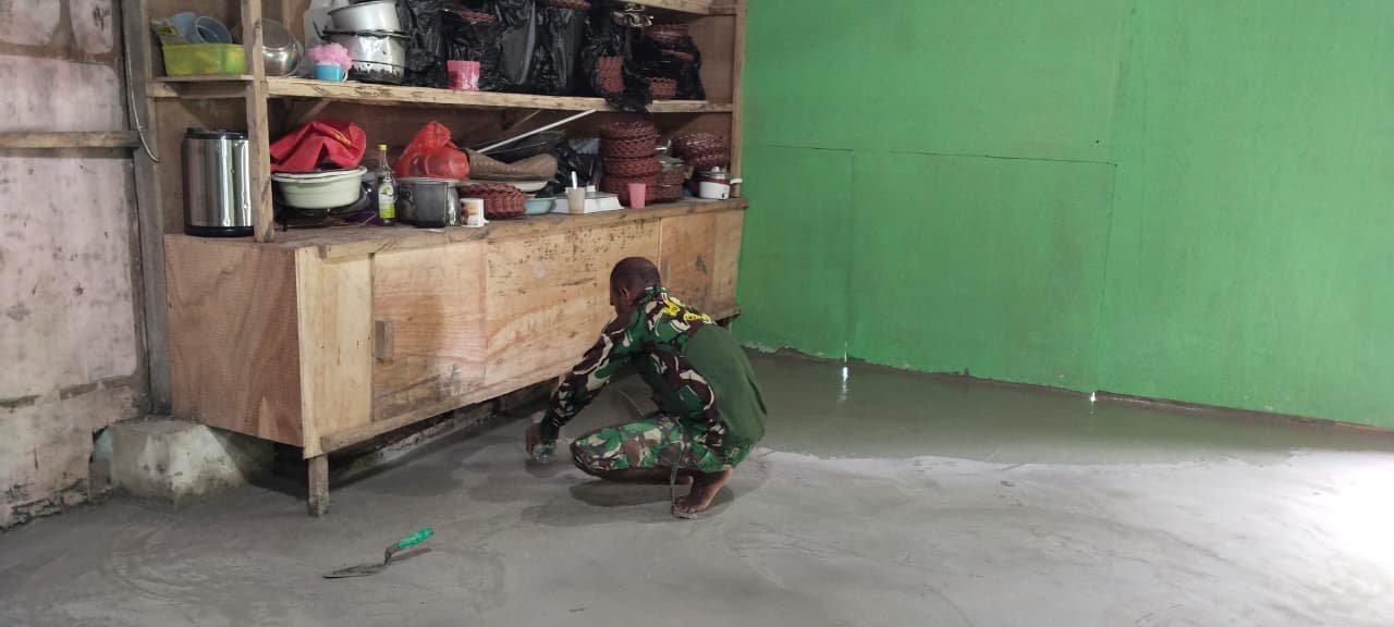 Sejak pagi, personel Satgas TMMD bersama warga tampak bekerja sama menyiapkan campuran material dan melakukan pengecoran dengan sistem gotong royong. Kegiatan dilakukan secara terstruktur agar lantai MCK memiliki kualitas yang kuat, rata, dan siap digunakan dalam jangka panjang.