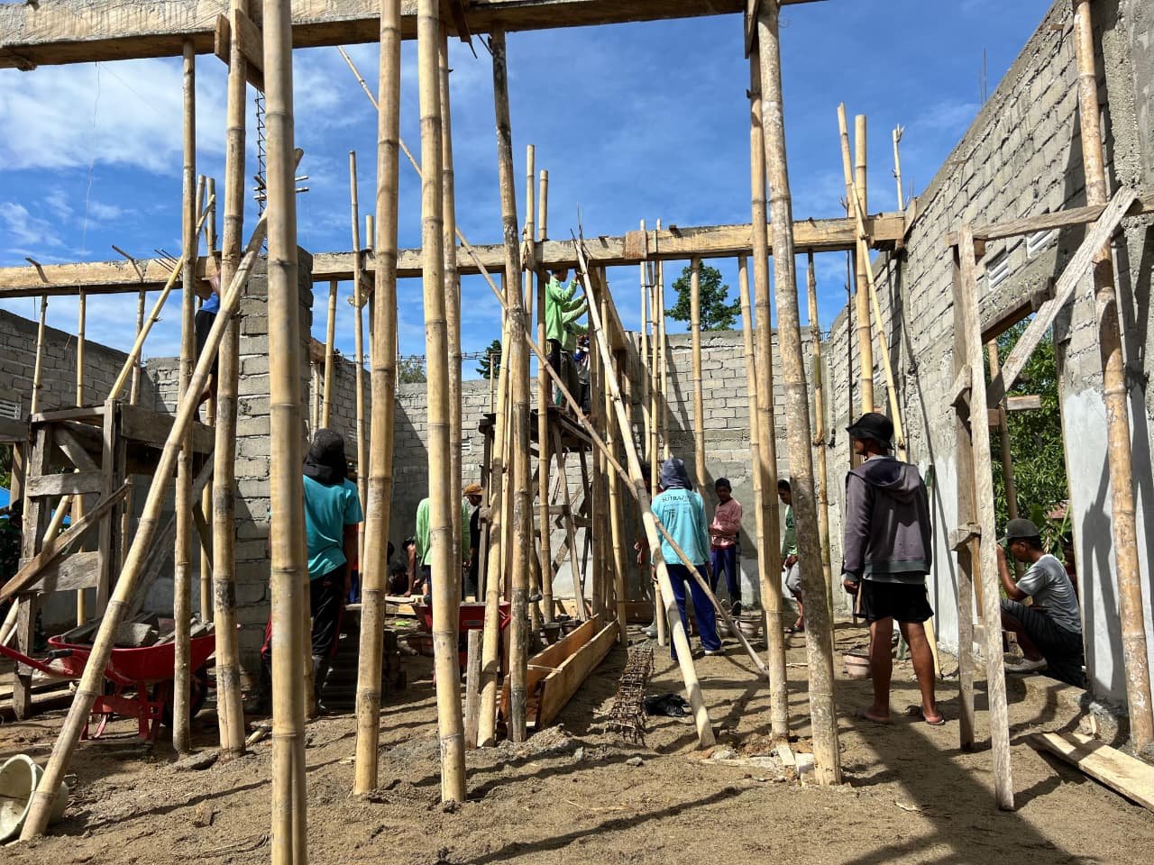 Semangat gotong royong terlihat jelas dalam kegiatan tersebut. Warga Dusun Ogomolobu turut membantu pengangkutan material, penyiapan bahan bangunan, serta pekerjaan pendukung lainnya demi mempercepat penyelesaian pembangunan.