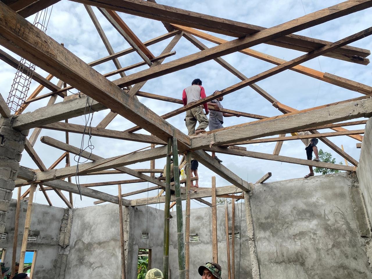 Pada kegiatan hari ini, personel Satgas bersama masyarakat melanjutkan pekerjaan pemasangan dinding dan pengecoran bagian struktur bangunan. Pekerjaan dilakukan secara bertahap dengan tetap memperhatikan kualitas konstruksi agar hasilnya kokoh dan tahan lama.