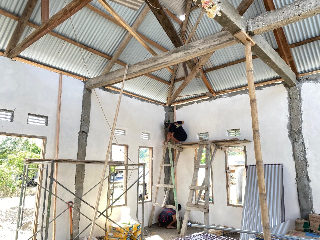 Pada hari ini, kegiatan difokuskan pada penyempurnaan struktur bangunan serta penataan bagian konstruksi agar bangunan masjid semakin kokoh dan siap digunakan oleh masyarakat.