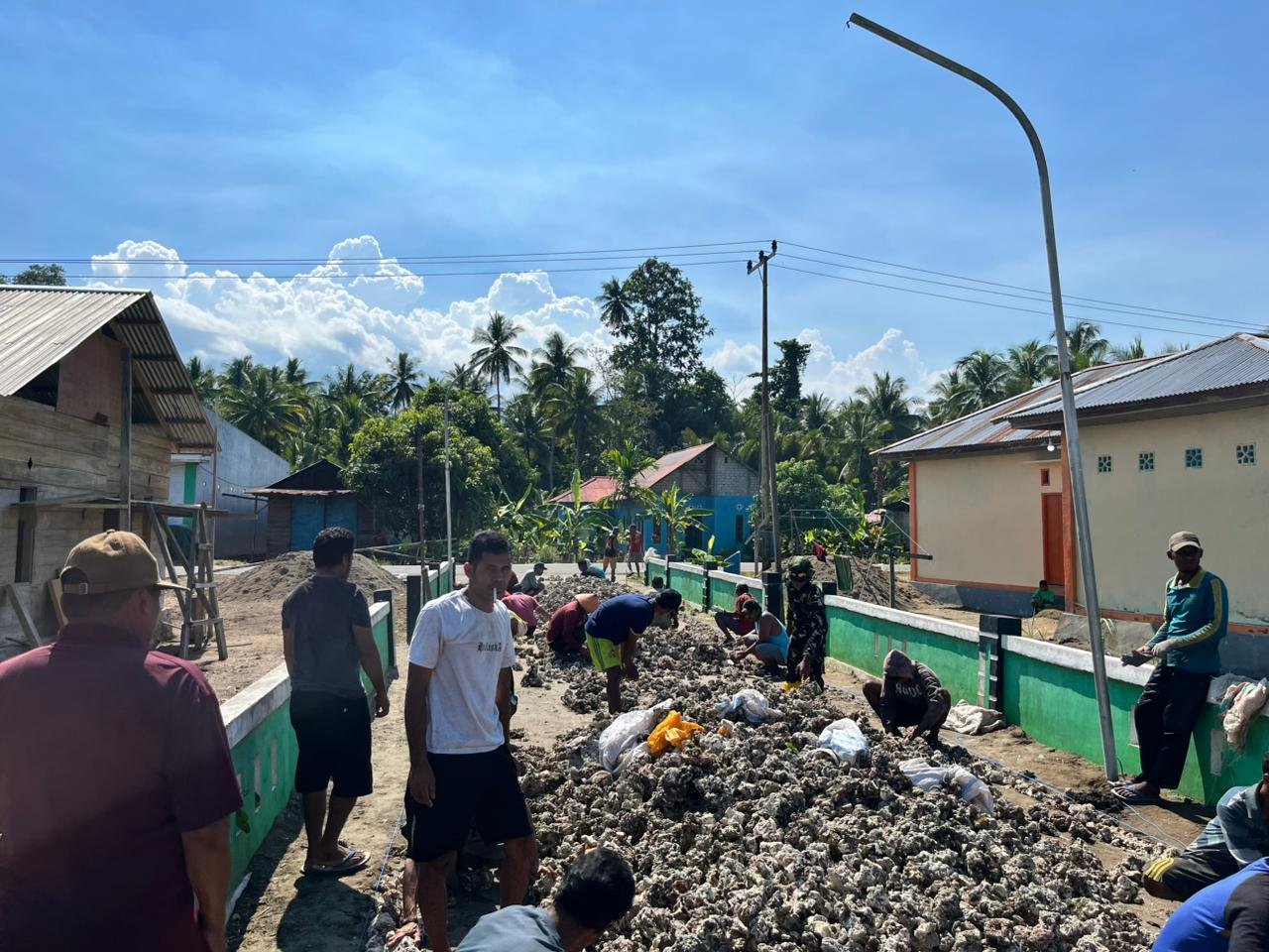 HALMAHERA SELATAN – Pengerjaan sasaran fisik program TNI Manunggal Membangun Desa (TMMD) Reguler ke-128 Kodim 1509/Labuha di Dusun Kesayangan, Desa Foya Tobaru, Kecamatan Gane Timur, terus dikerjakan bersama masyarakat, seperti pembangunan jalan rabat beton.