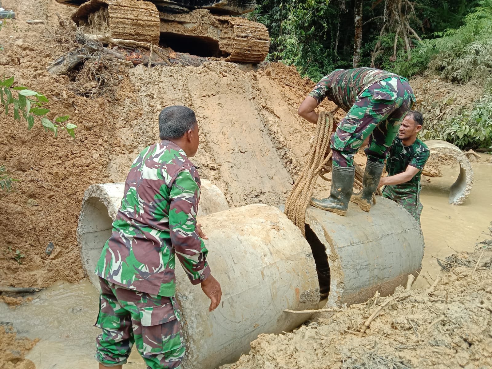 Kapten Inf Amrin menambahkan, sasaran pemasangan gorong-gorong bertujuan untuk kelancaran drainase air sehingga pada saat musim penghujan air tidak lagi merendam jalan.(Pr012).
