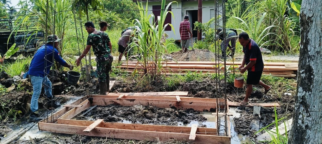 INHIL – Semangat gotong royong terus terlihat dalam pelaksanaan Pra-TMMD ke-123 di Kecamatan Tempuling. Selain menyiapkan kebutuhan untuk pembuatan sumur bor, beberapa warga dan personel Satgas TMMD Kodim 0314/Inhil juga sibuk menyiapkan pondasi yang nantinya akan digunakan untuk tiang tower bak penampungan air.