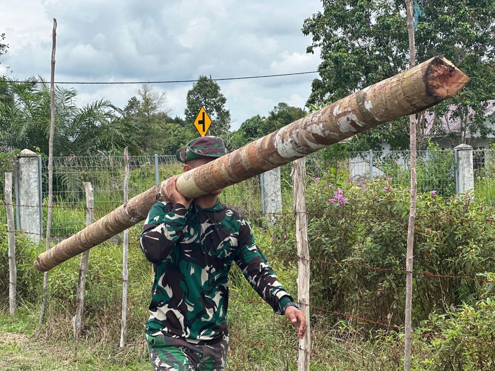 Barito Selatan – Satgas TMMD Kodim 1012/Buntok terlihat aktif mengangkut material untuk pembangunan kandang ayam potong di lokasi Ketahanan Pangan, Jalan Urbanus Marcun, Sababillah, Kecamatan Dusun Selatan, Kabupaten Barito Selatan. Kegiatan ini merupakan bagian dari program TMMD yang mendukung ketahanan pangan pemerintah.
