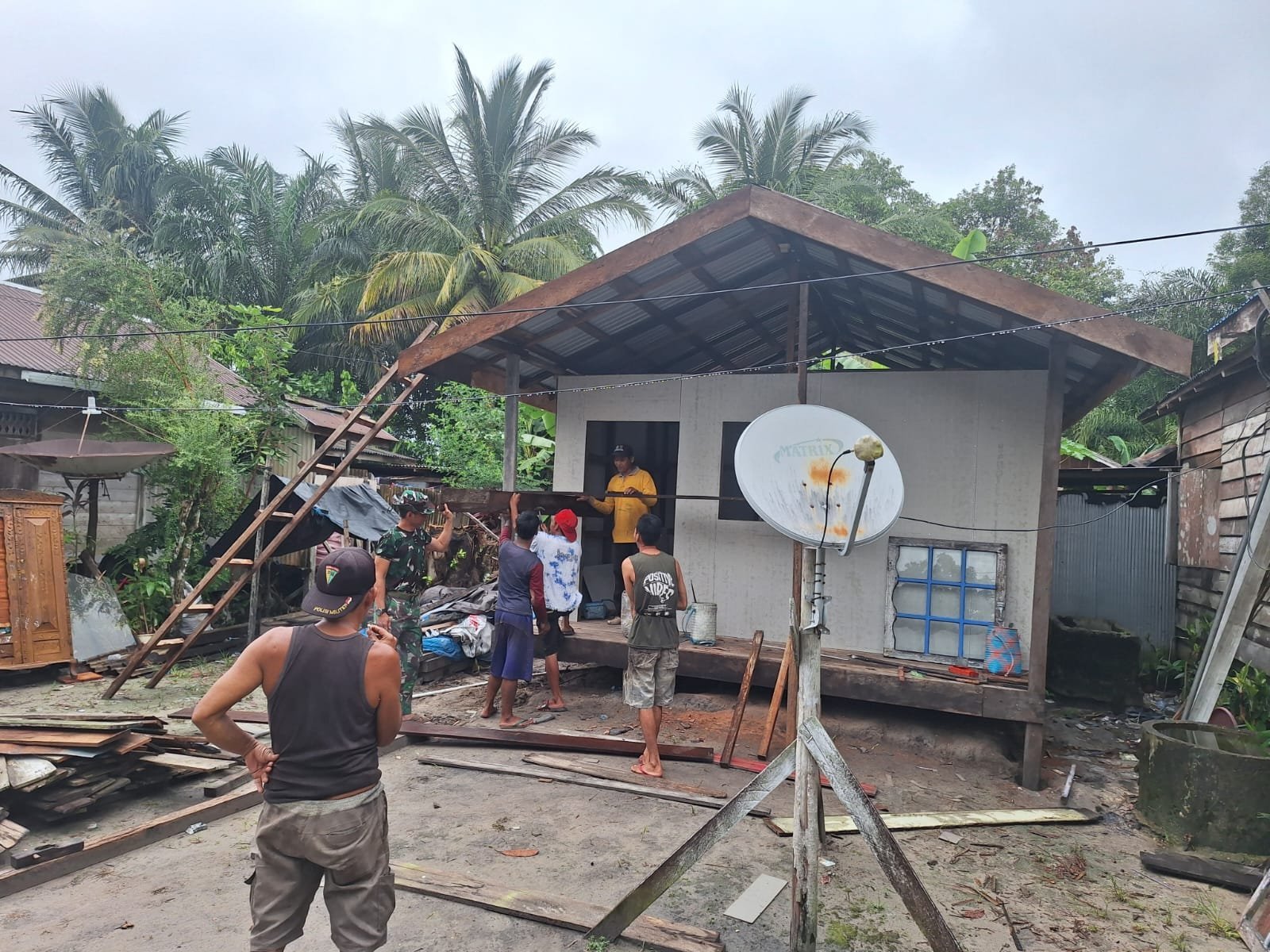Barito Selatan – Satuan Tugas TNI Manunggal Membangun Desa (TMMD) Ke-124 Kodim 1012/Buntok terus melanjutkan pengerjaan rumah tidak layak huni (RTLH) yang menjadi salah satu sasaran fisik dalam program TMMD. Pada Minggu (18/05/2025), pengerjaan difokuskan pada bagian teras rumah.