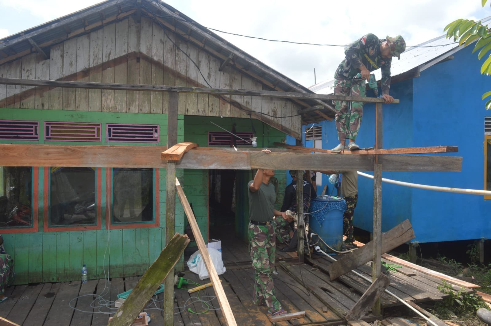 Sukamara – Satgas TMMD ke-123 Kodim 1014/Pbn terus menunjukkan kepeduliannya terhadap masyarakat dengan melakukan perbaikan Rumah Tidak Layak Huni (RTLH) di Desa Nibung. Saat ini, anggota Satgas bersama warga tengah membongkar bagian atap rumah yang nantinya akan diperbaiki agar lebih layak huni, Jumat (21/02/2025).