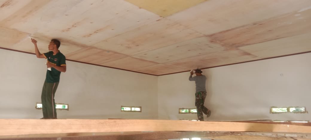 Satgas TMMD Kodim 1311/Morowali Pasang Plafon Ruang Kelas Ponpes Darul Quran Alkhairaat