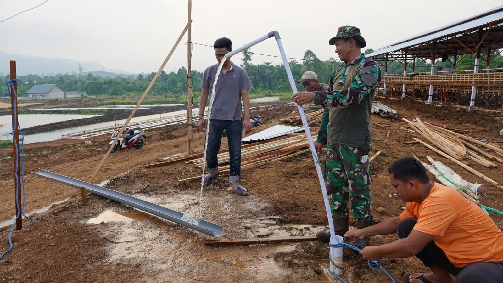 Proses pemasangan saluran air ini dilakukan untuk memastikan kebutuhan air bagi peternakan ayam petelur dapat terpenuhi dengan baik, baik untuk minum ternak maupun menjaga kebersihan kandang. Salah satu anggota Satgas TMMD Kodim 1311/Morowali menyampaikan bahwa langkah ini merupakan bagian dari tahap akhir persiapan sebelum peternakan mulai beroperasi.