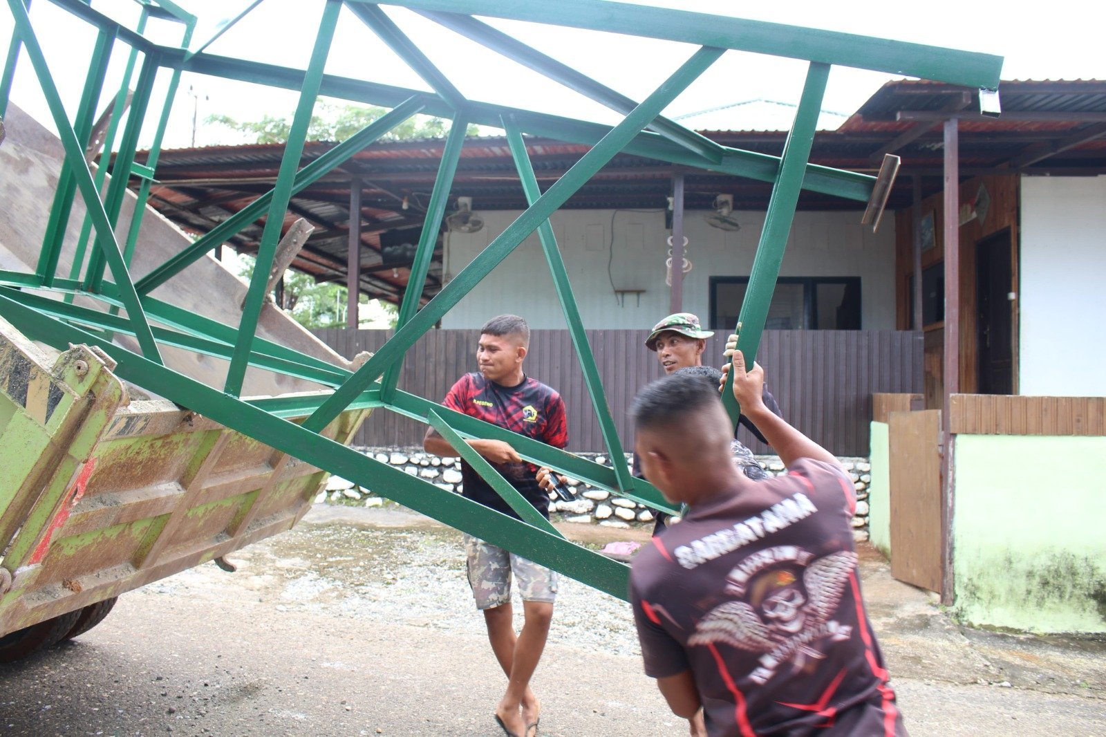 Morowali – Upaya Satgas TMMD ke-123 Kodim 1311/Morowali dalam menyediakan akses air bersih bagi masyarakat Desa Bahomohoni, Kecamatan Bungku Tengah, terus berlanjut. Selain menurunkan dan mendistribusikan tandon air, Satgas TMMD juga menyiapkan kerangka besi setinggi dua meter sebagai penyangga tandon agar dapat berfungsi secara optimal.