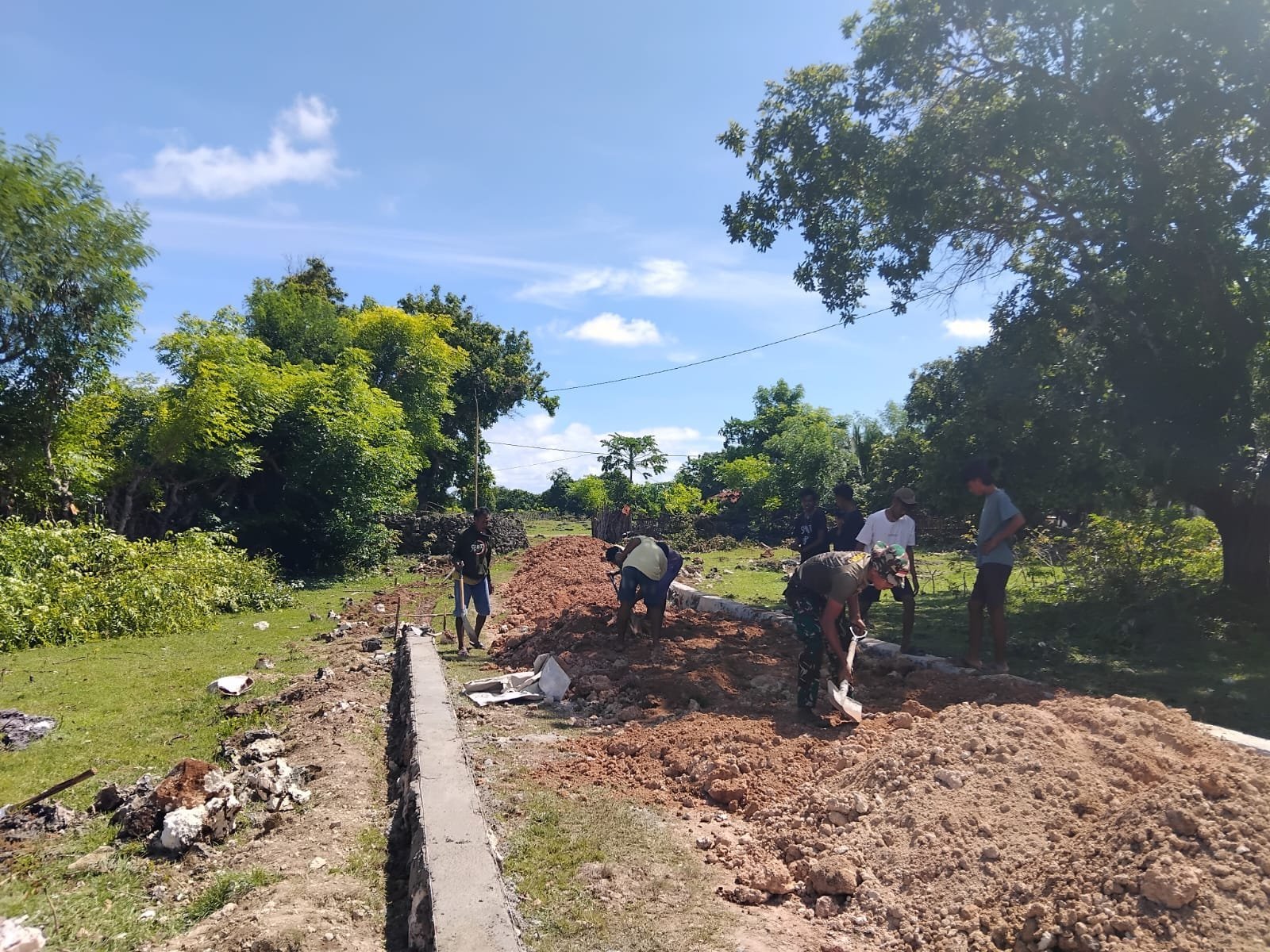 Serda Hendrik Hati.W menjelaskan bahwa selama satu pekan ini, anggota Kodim 1601/Sumba Timur bersama warga serta anggota gabungan Satgas TMMD Ke-123 telah bekerja keras melakukan pengurugan badan jalan GKS Hanggoro Jemaat Kaliuda sepanjang 200 meter dengan lebar 6 meter. “Kami bersama masyarakat bahu-membahu untuk menyelesaikan pekerjaan ini agar segera bisa dimanfaatkan,” ujarnya.