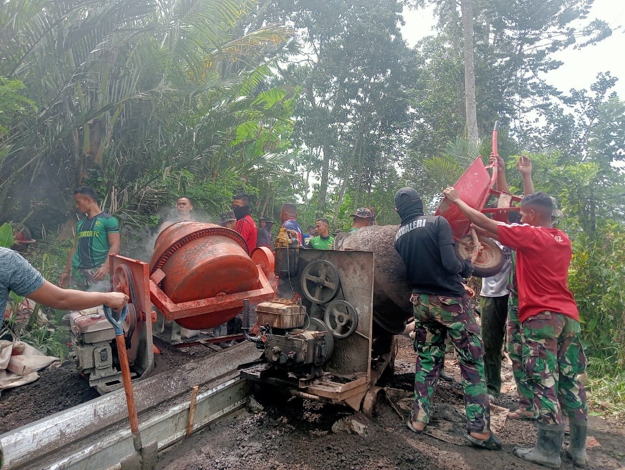 “Kami sedang mempersiapkan bekisting sebagai cetakan cor di kanan-kiri jalan. Ini merupakan langkah awal sebelum masuk ke tahap pengecoran untuk memastikan hasil betonisasi nantinya rapi, kuat, dan tahan lama,” ujar Kapten Sujana.