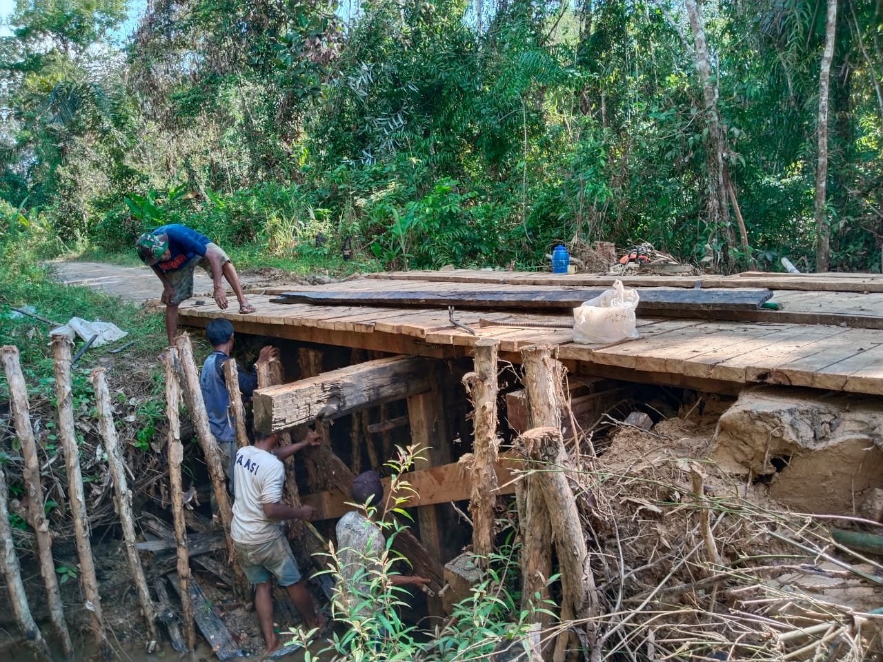 “Jembatan ini sangat vital. Selain sebagai jalur utama warga, juga sebagai akses distribusi hasil pertanian. Karena itu, harus dibangun sekuat mungkin,” ujar Komandan SSK TMMD Kodim 1012/Buntok, Kapten Inf Ardiansyah.