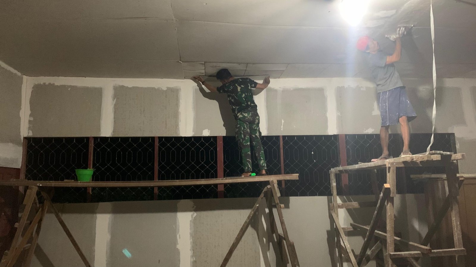 Karau Kuala, Barsel – Pengerjaan rehab ruang kelas 1 SDN 2 Karau Kuala, Desa Talio, Kecamatan Karau Kuala, terus dilakukan hingga malam hari. Satgas TMMD Reguler Ke-124 Kodim 1012/Buntok bersama warga setempat bekerja lembur untuk mempercepat perbaikan fasilitas pendidikan yang sangat dibutuhkan anak-anak.