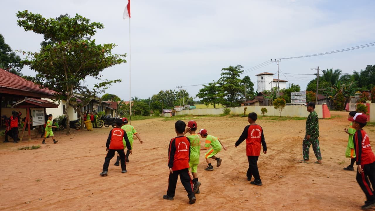 Kotawaringin Timur – Suasana penuh keceriaan terlihat di lapangan SDN 1 Bukit Indah, Kecamatan Telaga Antang, saat anggota Satgas TMMD Reguler ke-127 Kodim 1015/Sampit bermain bola plastik bersama anak-anak desa, Jumat (27/02/2026).