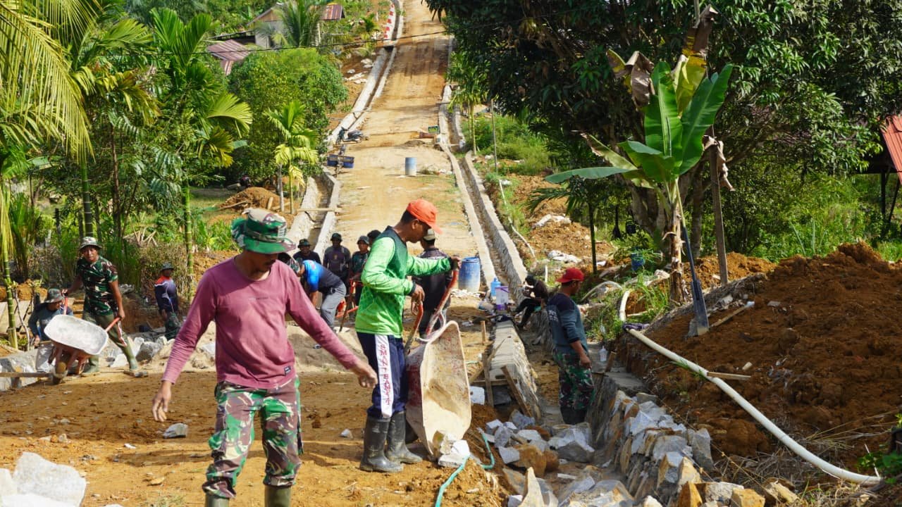 Hari libur yang biasanya dimanfaatkan untuk beristirahat tidak menjadi alasan bagi Satgas TMMD untuk menghentikan aktivitas pembangunan. Para prajurit bersama masyarakat tetap bekerja secara gotong royong demi mempercepat penyelesaian berbagai sasaran fisik yang telah direncanakan.