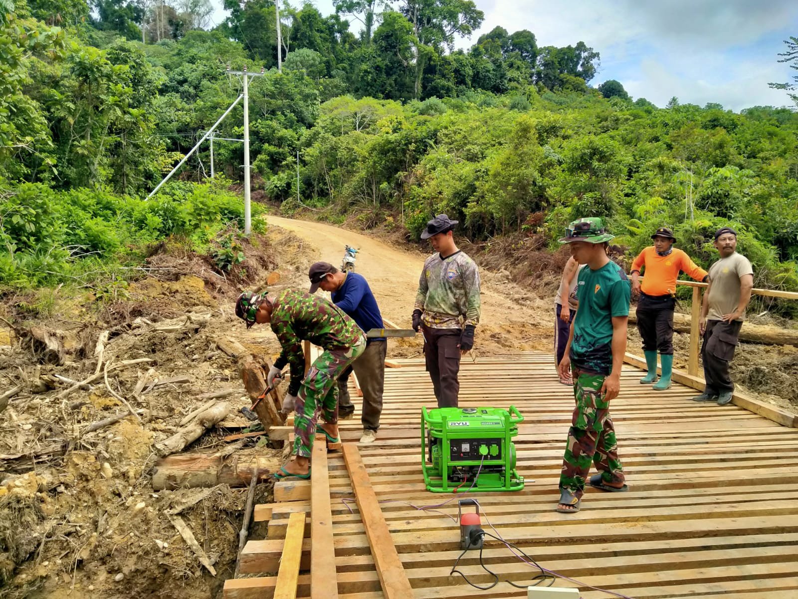 Dijelaskan Dandim, Pengupasan badan jalan penghubung antar Dusun ini sepanjang 8 km, dengan pembuatan jembatan sebanyak tiga buah.