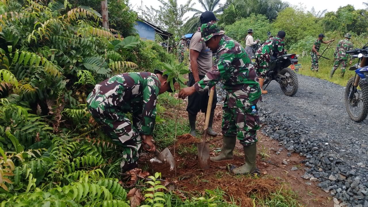 Penanaman pohon buah di sepanjang jalan ini juga melibatkan masyarakat sekitar yang dengan antusias ikut serta menanam dan merawat bibit yang disediakan. Sinergi antara Satgas TMMD dan warga menjadi cerminan nyata semangat gotong royong serta kepedulian bersama terhadap lingkungan hidup.