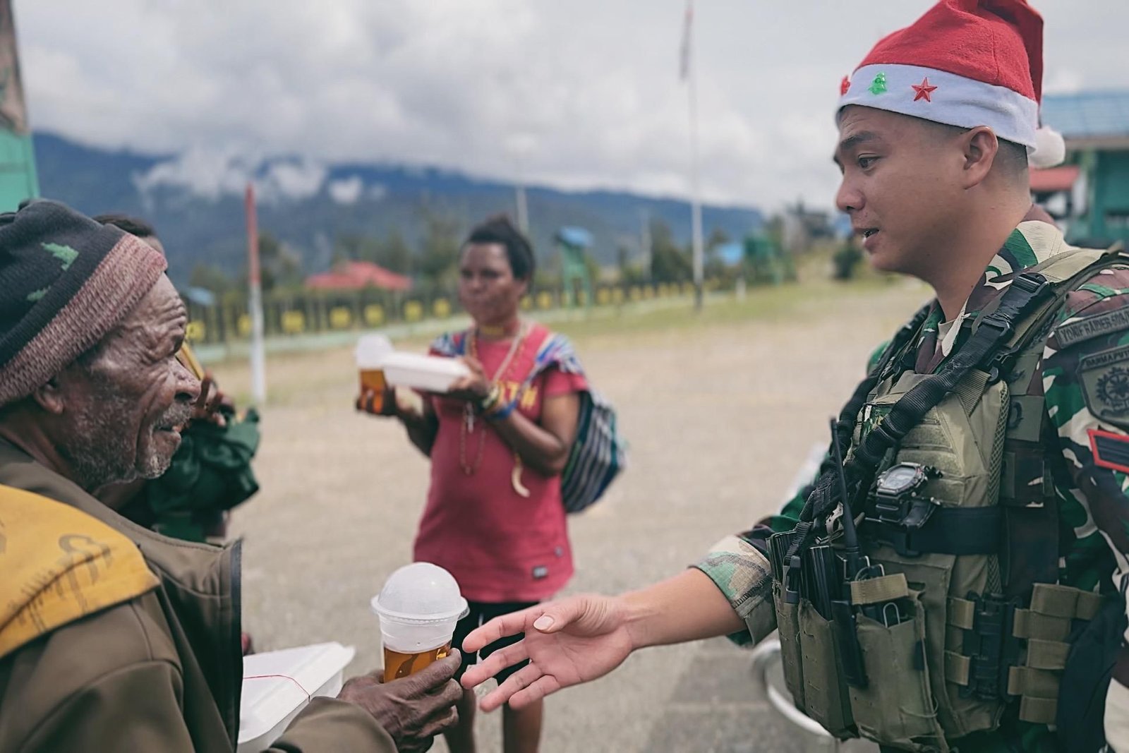 Intan Jaya, Papua. Dalam rangka menyambut sukacita Natal, Satgas Yonif 509 Kostrad melalui Titik Kuat Koper melaksanakan program berbagi makanan gratis kepada masyarakat setempat. Kegiatan ini dipimpin oleh Dan TK Koper, Letda Inf Alvinta Sembiring, dan sekaligus menjadi ajang komunikasi serta pendekatan kepada warga di sekitar. Selasa (24/12/2024)