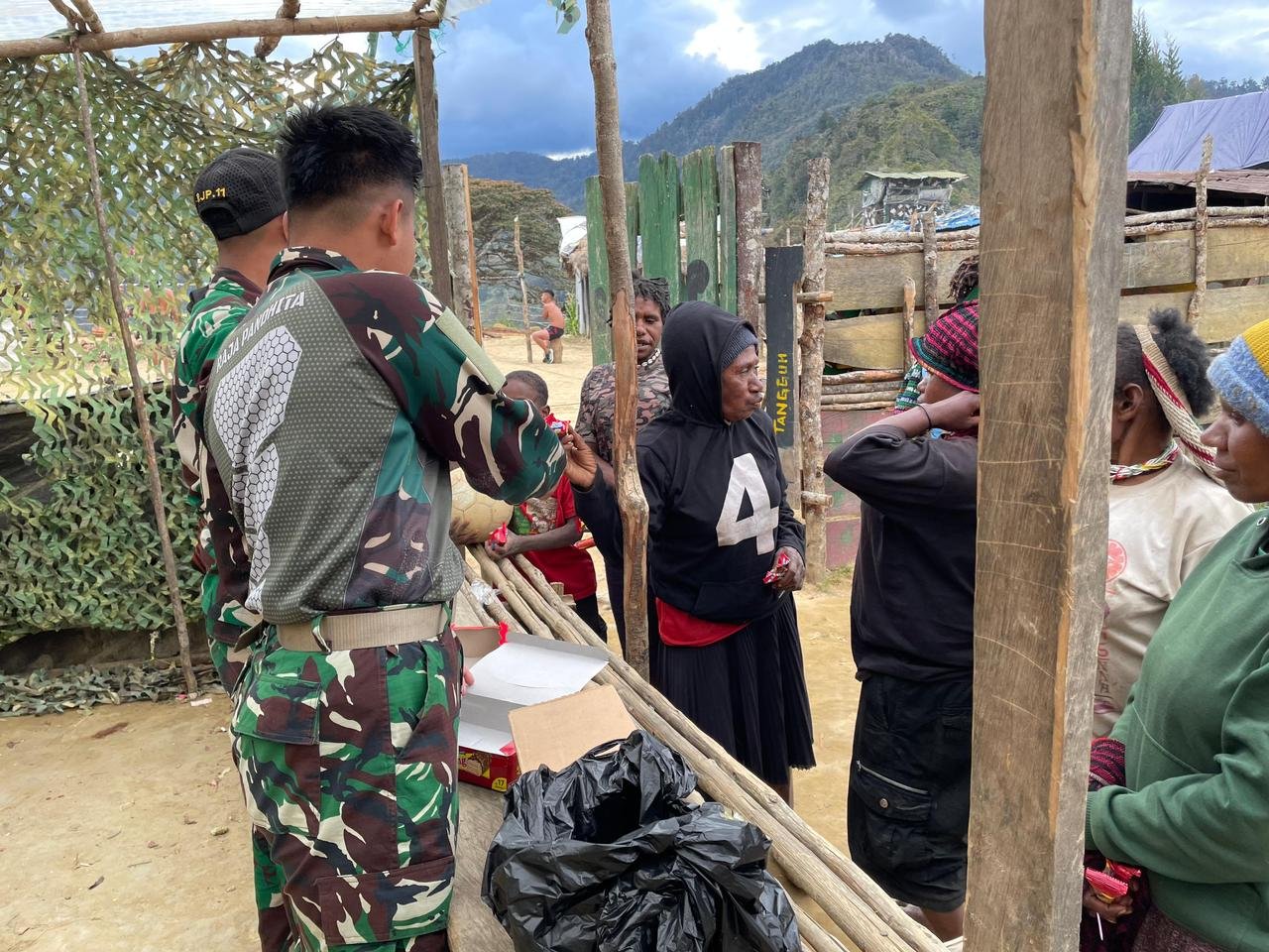 LANNY JAYA – Dalam mewujudkan perhatian dan cinta kasih terhadap anak-anak perbatasan papua, Satgas Yonif 614/RJP Pos Popome membagikan susu dan makanan ringan kepada anak-anak di Kampung Popome, Distrik Mokoni, Kabupaten Lanny Jaya, Papua Pegunungan, Sabtu (22/2/2025).