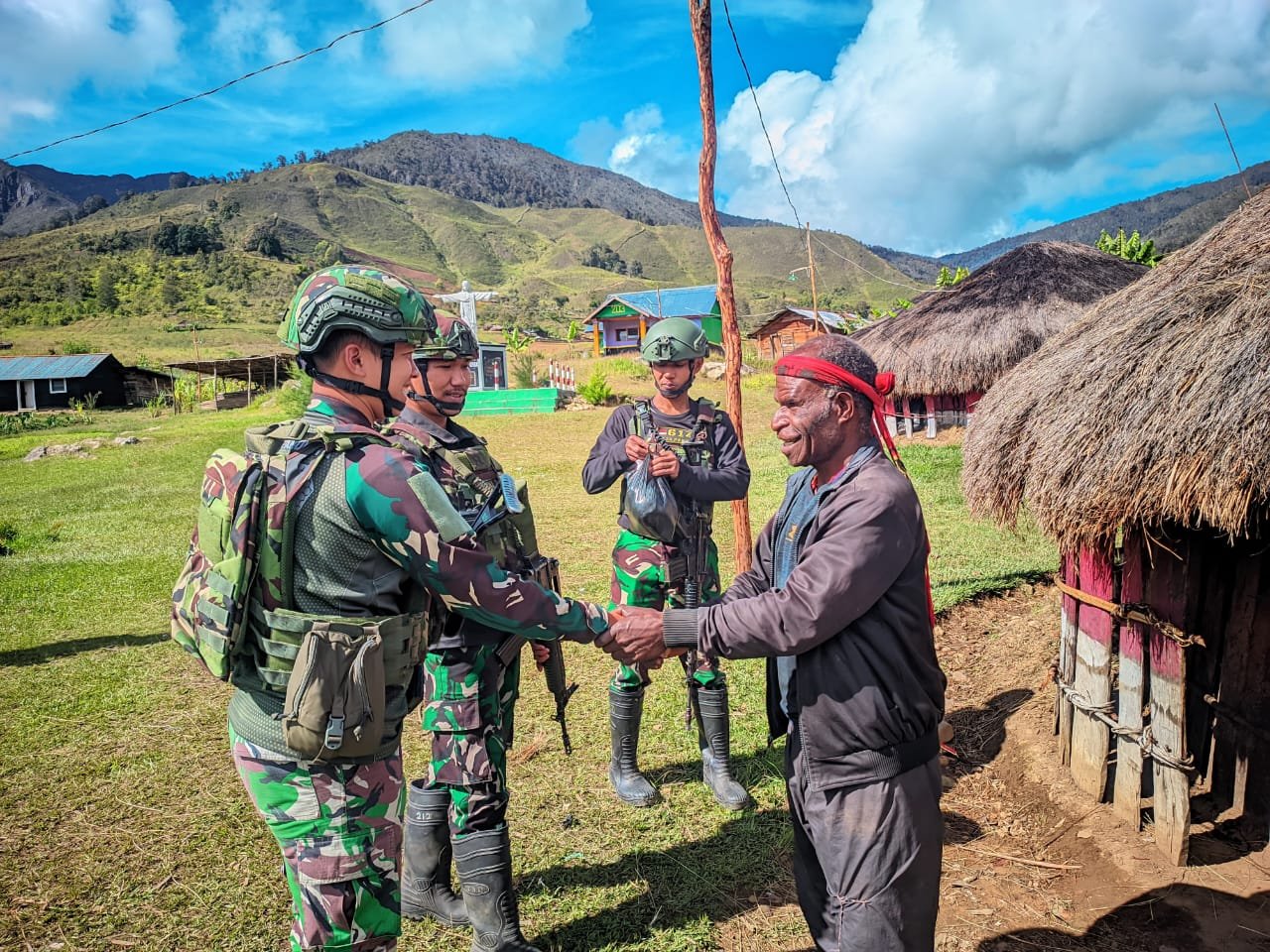 LANNY JAYA – Satgas Yonif 614/RJP Pos Malagayneri mengunjungi Rumah Ondoafi Kampung Lowanom Bapak Wetinus Kogoya (67) yang dipimpin Langsung oleh Wadanpos Malagayneri Letda Inf Willy yang bertempat di Kampung Lowanom, Distrik Malagayneri, Kabupaten Lanny Jaya, Papua Pegunungan, Selasa (11/3/2025).