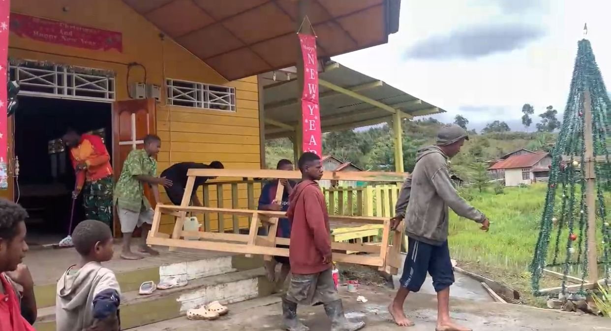 Satgas Yonif 751/VJS Renovasi Gereja Santo Petrus Serwan di Kampung Wanbakon: Dukung Ibadah, Pererat Kebersamaan