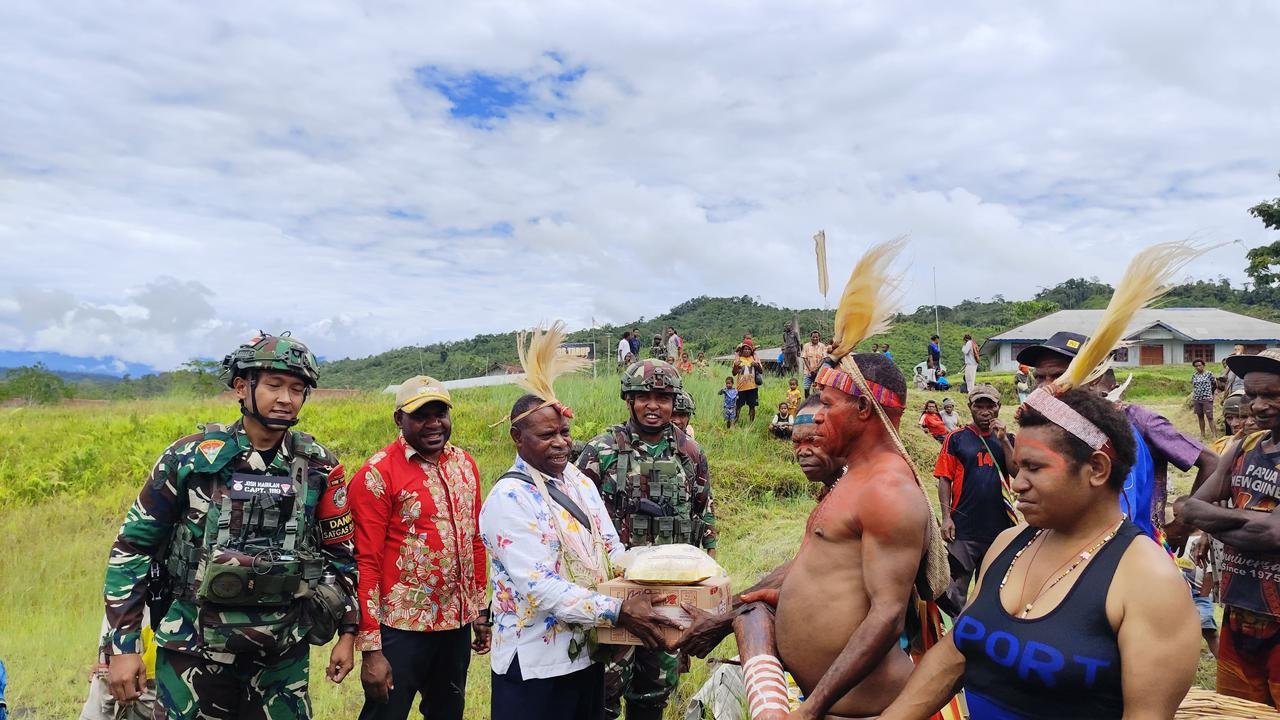 Tarup, Pegunungan Bintang — Satgas Pamtas RI–PNG Yonif 751/Vira Jaya Sakti (VJS) melaksanakan kegiatan penyambutan kunjungan Anggota DPRD Kabupaten Pegunungan Bintang, Bapak Yohanis Yamkin, S.I.P., beserta tiga orang rombongan di Distrik Tarup. Kunjungan tersebut bertujuan untuk memberikan bantuan kepada masyarakat Distrik Tarup sebagai bentuk perhatian dan kepedulian terhadap kebutuhan warga di wilayah perbatasan. (Sabtu,21/2/2026).