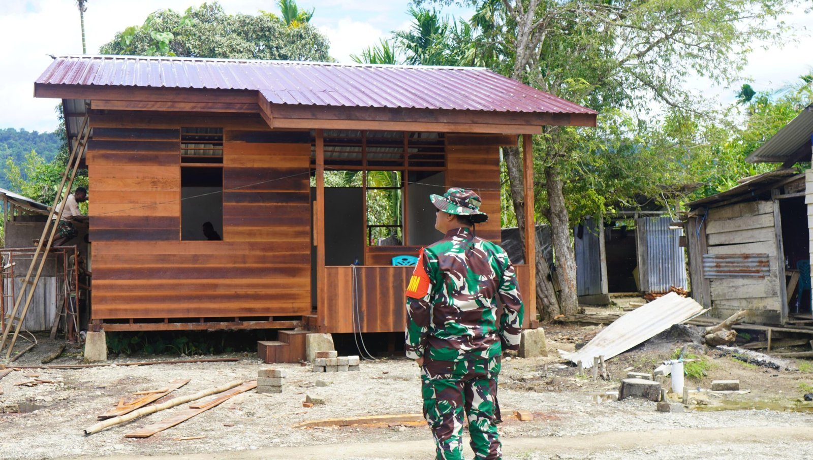 Pembangunan rumah ini dilaksanakan secara bertahap dengan melibatkan tenaga Satgas dan masyarakat setempat dalam semangat gotong royong. Mereka bersama-sama menyiapkan kayu, semen, dan perlengkapan lainnya untuk mempercepat proses penyelesaian.