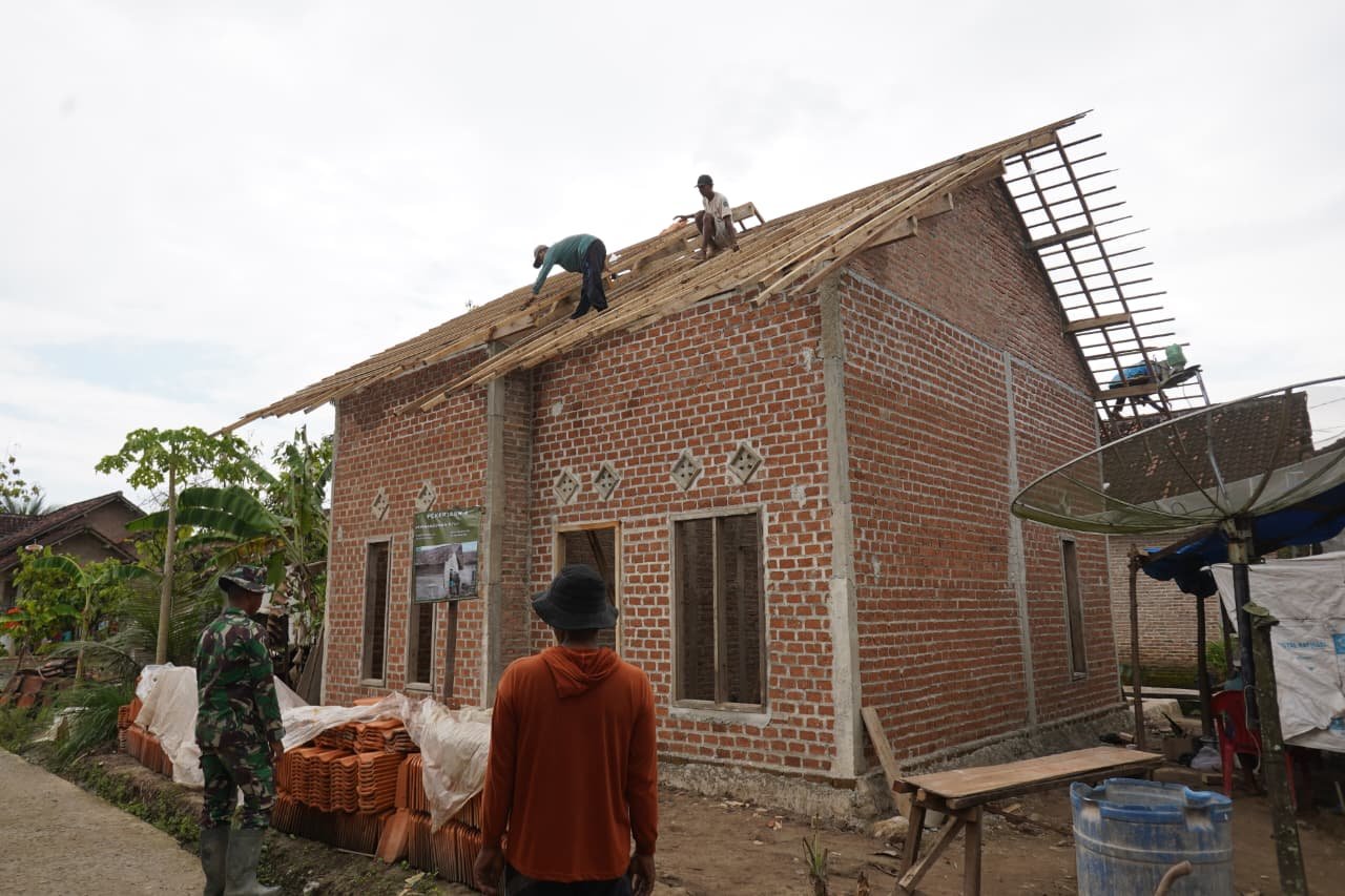 Pesawaran – Pembangunan Rumah Tidak Layak Huni (RTLH) dalam program TMMD ke-127 Kodim 0421/LS terus menunjukkan perkembangan. Rumah milik Sdr. Ngadino kini telah memasuki tahap siap naik genteng.