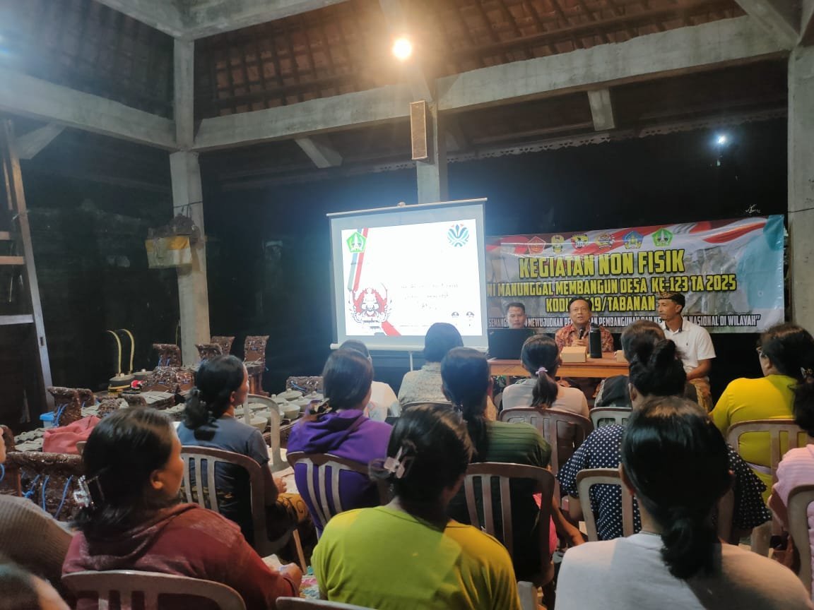 Tabanan – Satuan Tugas TNI Manunggal Membangun Desa (Satgas TMMD) Ke-123 Kodim 1619/Tabanan telah sukses menyelesaikan seluruh sasaran non-fisik dalam program TMMD Ke-123. Program yang berlangsung selama satu bulan ini tidak hanya berfokus pada pembangunan infrastruktur, tetapi juga pada peningkatan kesejahteraan masyarakat melalui berbagai kegiatan edukatif dan sosial, Rabu (19/3/2025)