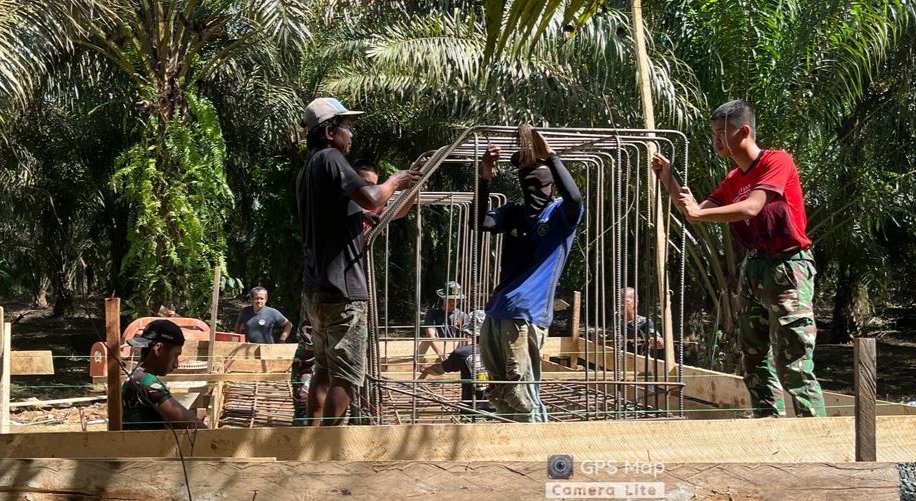 Terlihat di lapangan, anggota TNI bersama warga dengan cekatan merakit besi rangka pondasi, memastikan setiap bagian terpasang dengan kuat dan presisi. Meski dihadapkan dengan berbagai tantangan, seperti kondisi medan dan cuaca yang tidak menentu, hal tersebut tidak menyurutkan semangat mereka untuk terus bekerja.