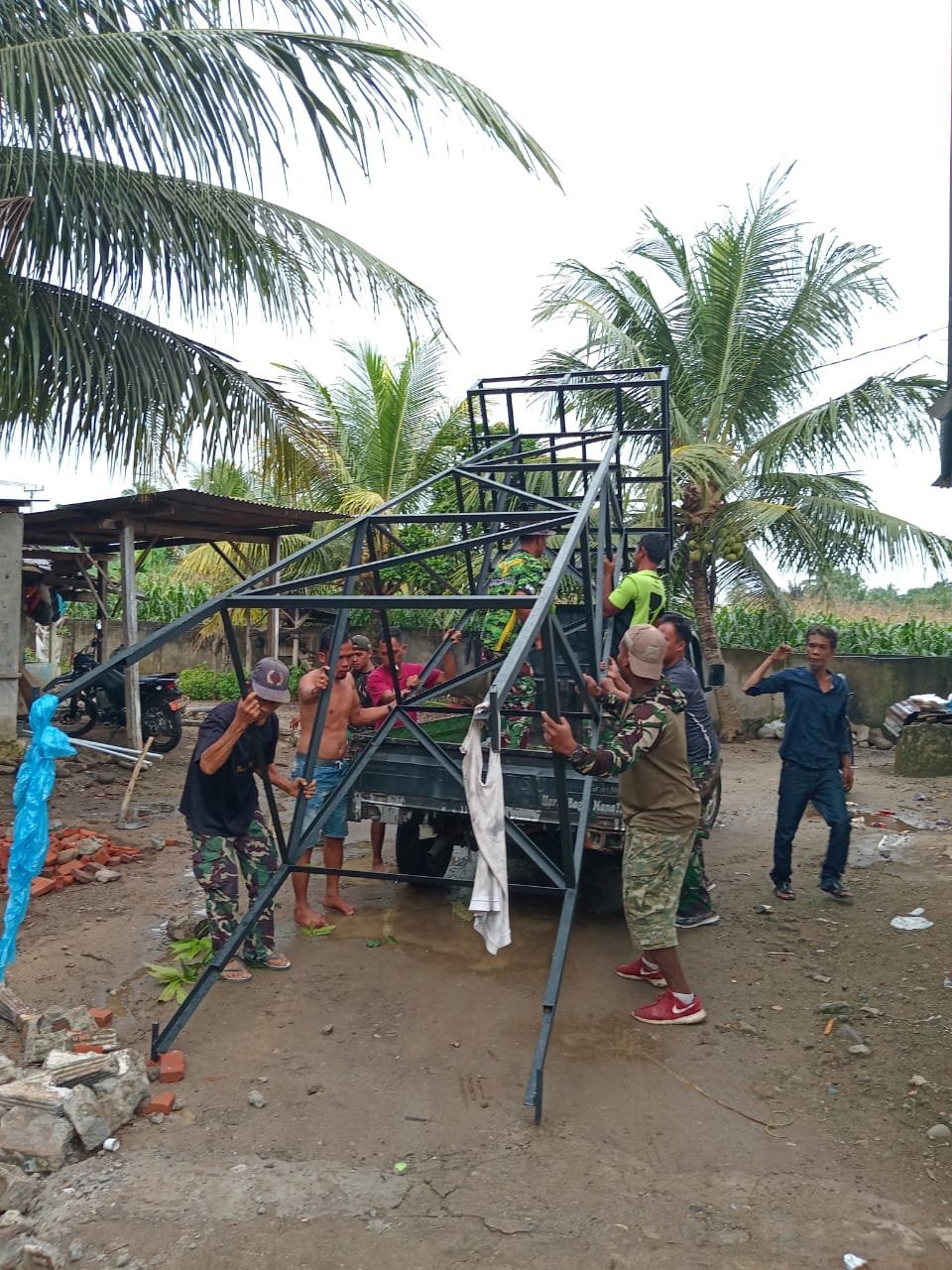 Semangat Gotong Royong Warga Bangun Tower Air Bersama Satgas TMMD Ke-124 Kodim 0408/BS