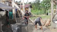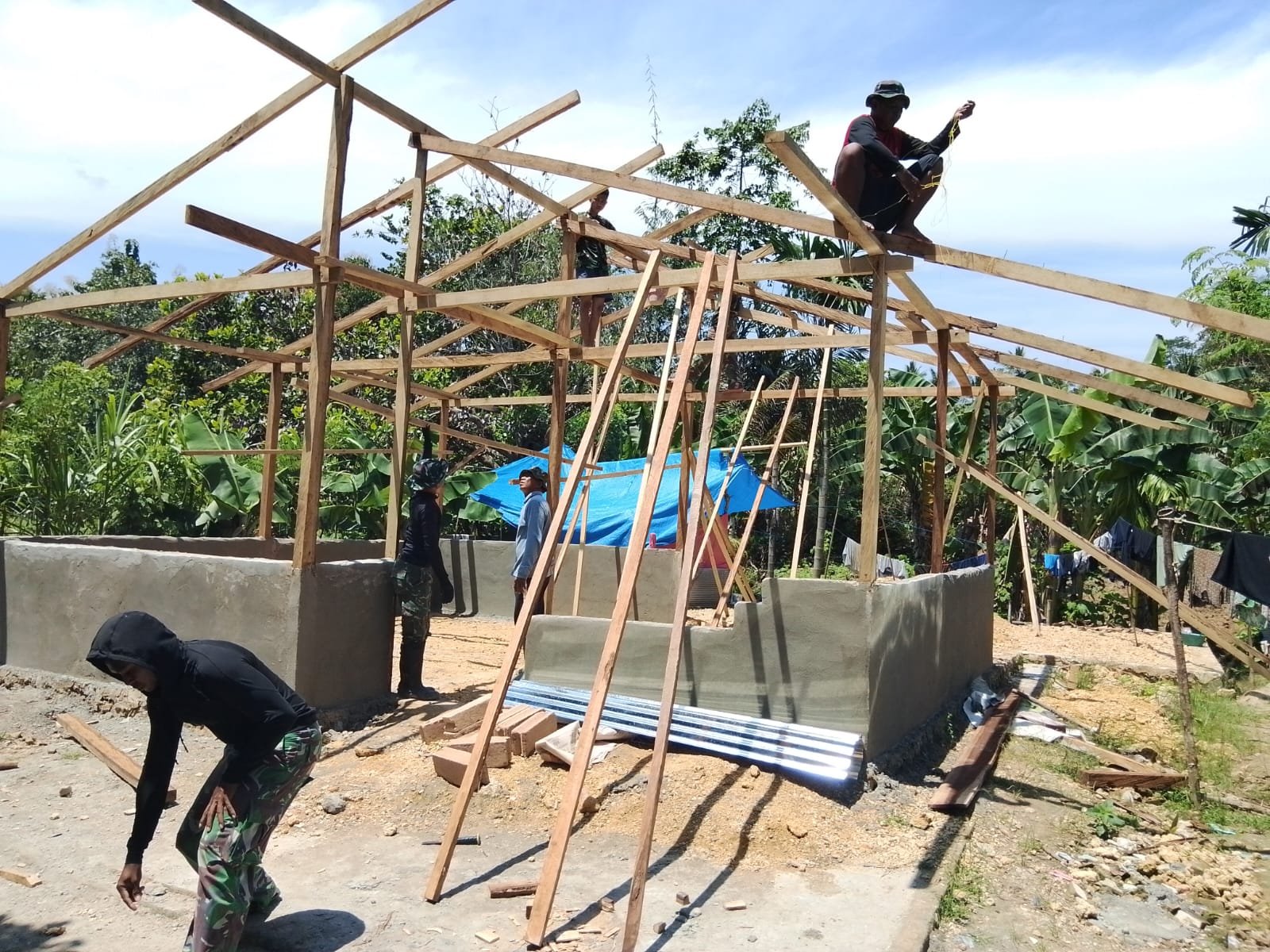 Personel Satgas TMMD bersama warga setempat tampak bekerja keras mempercepat pembangunan Rumah Tidak Layak Huni (RTLH) yang menjadi salah satu sasaran fisik program tersebut.