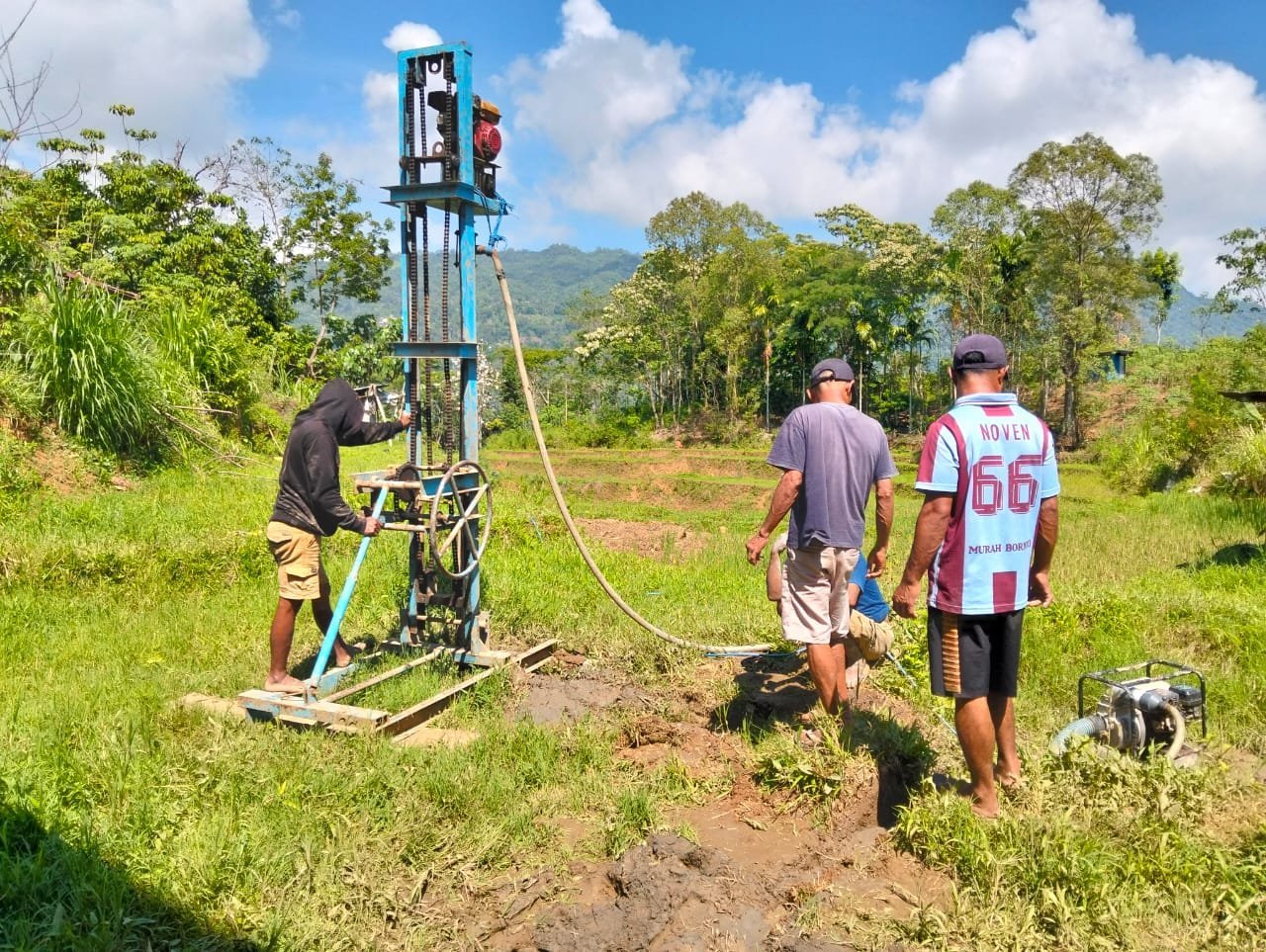 Selain pengecoran pondasi, Satgas TMMD juga mulai melakukan penggalian sumur bor untuk mendukung sistem air bersih. Warga pun turut antusias, bekerja bahu-membahu membawa bahan bangunan, mencampur semen, hingga menyiapkan air untuk pengecoran.