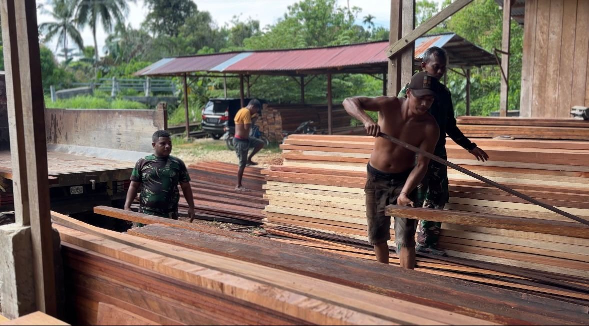 Proses pemindahan kayu dilakukan secara manual dengan mengandalkan tenaga personel TNI dan masyarakat. Kegiatan ini menjadi bentuk kerja sama nyata dalam mendukung percepatan pembangunan fasilitas di wilayah kampung.